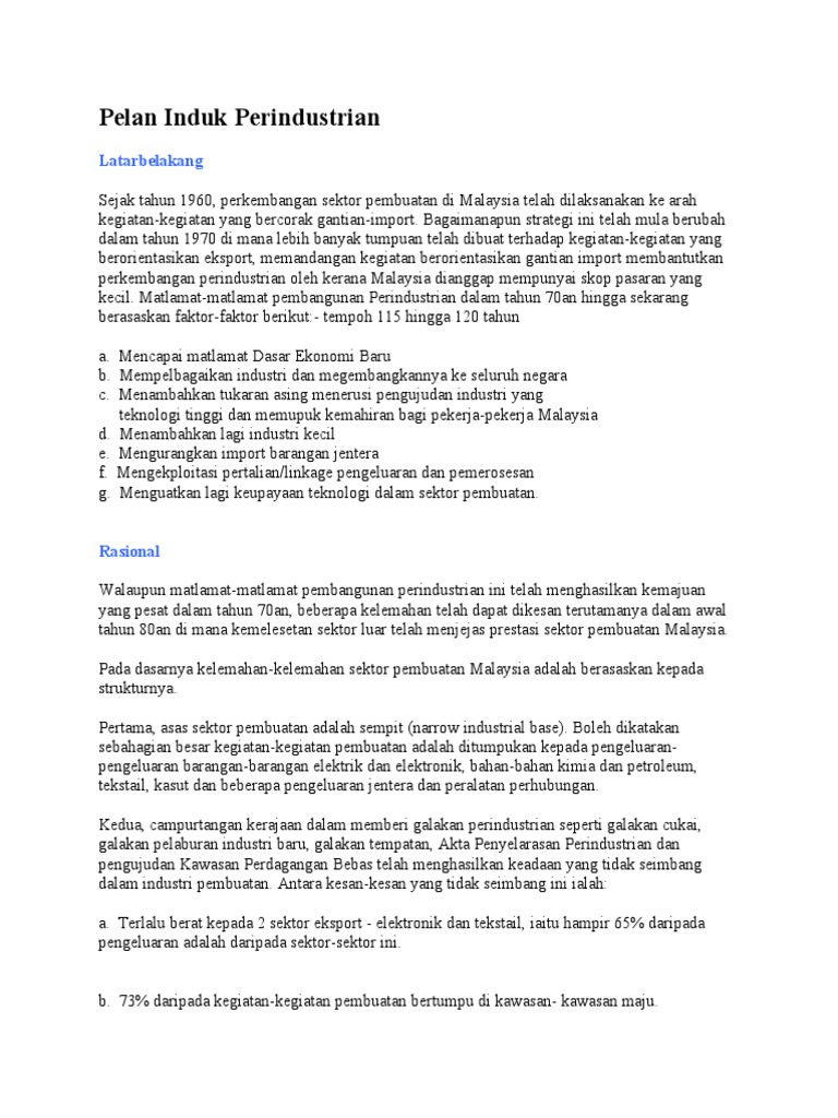 Pelan Induk Perindustrian Negara Pengajian Am 2 from image.slidesharecdn.com Pelaksanaan pelan induk mygovea telah mendapat sokongan pengurusan tertinggi negara dalam mesyuarat panel cio sektor awam pada 10 april 2013 dan mesyuarat jawatankuasa it dan internet kerajaan (jitik) pada 7 november. Anuwar ali, and hassan hj ali, (1990) pelan induk perindustrian : (a) menjadikan sektor perkilangan sebagai catalyst pertumbuhan perindustrian negara; Dilaksanakan kerana pengeluaran barangan tempatan sentiasa menghadapi cabaran ekonomi antarabangsa.objektif1. Membincangkan tentang perkembangan peranan sektor pertanian dan sektor perkilangan dalam pelan induk perindustrian. 16 pelan perancangan strategik tahun latar belakang pelan induk perindustrian ketiga (imp3), , merupakan sebahagian daripada objektif imp3 objektif keseluruhan imp3 adalah untuk mencapai daya saing global jangka panjang bagi industri melalui transformasi dan inovasi sektor. Dokumen awal pelan induk pembangunan.pelan induk pembangunan profesionalisme keguruan. Pelan induk perindustrian menjadi asas perancangan dan pembangunan sektor perkilangan iaitu menjadi penjana pertumbuhan ekonomi negara, mengukuhkan industri dan.