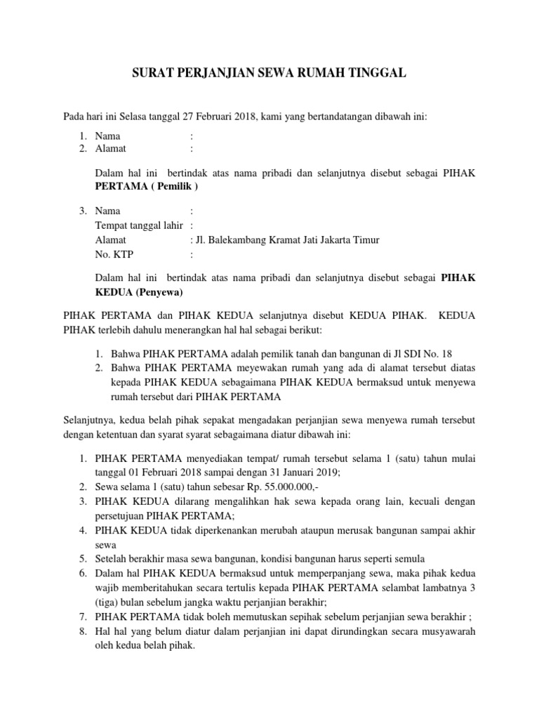 Surat perjanjian sewa rumah 2018. Check spelling or type a new query. We did not find results for: Maybe you would like to learn more about one of these?